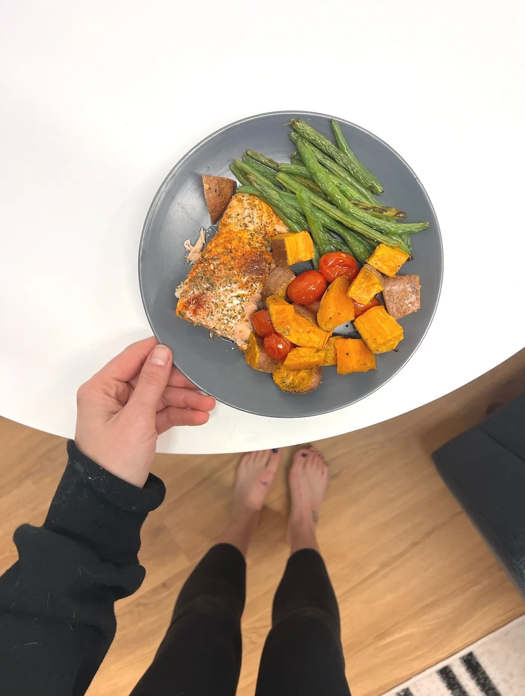 One of my favorite meals is a simple salmon and veggie dish at a restaurant one block from me. Salmon is one of the healthiest fish due its high levels of omega-3 fatty acids, which are anti-inflammatory in the body. Plus, it’s my absolute favorite fish. I love it raw, smoked, pan-seared and baked.