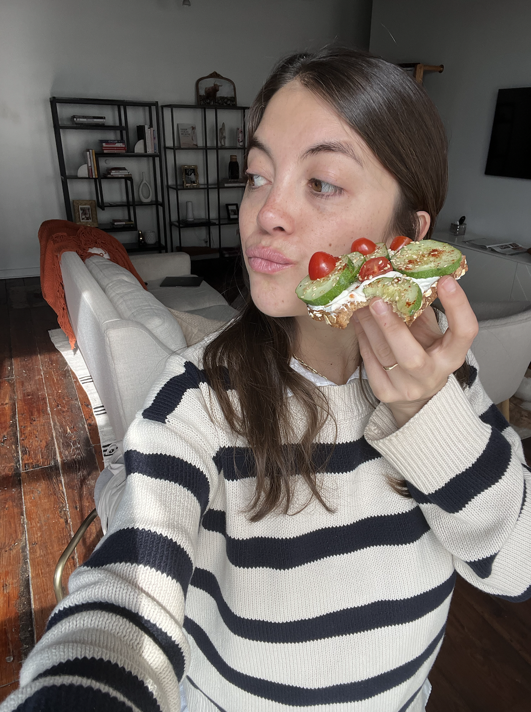 Cucumber, Cream Cheese and Tomato Toast 🍅 🥒 🍞